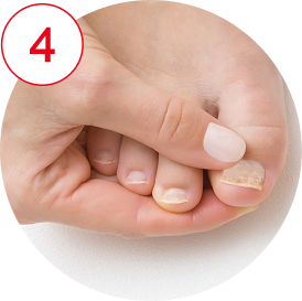 2. Gently file the nails, removing loose, hollow, and thickened parts, and wipe off dirt and debris.